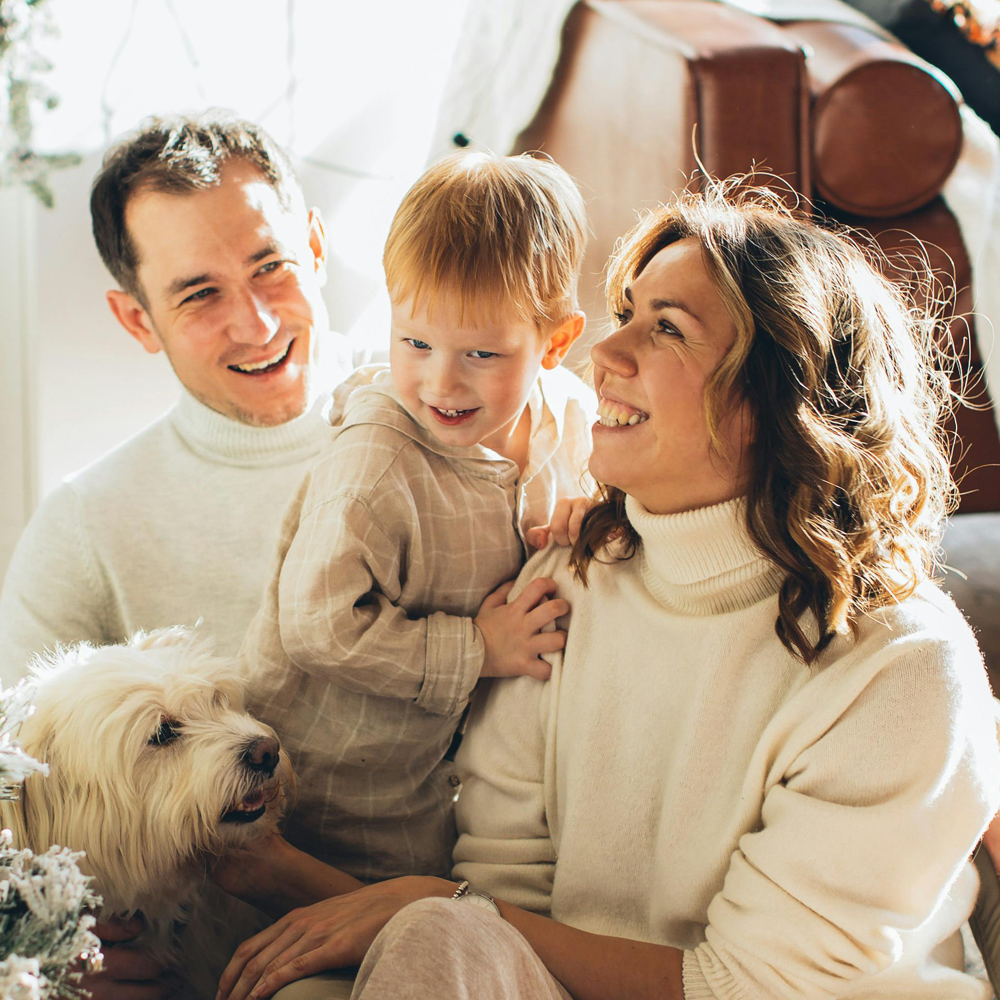 Venimos de Sevilla y llevamos 10 años compartiendo vida. Por el camino, hemos crecido con Leo, nuestro peque de 5 años, y Bimba, una perrita muy tranquila.